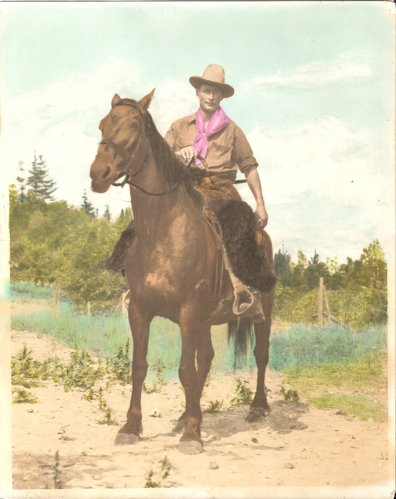 I never met Alfred – he died in 1954 – but I do have fond childhood memories of his wife, my ‘Grandma Deedee’ (Edith Salter née Jessop), who lived until 2002. She was born in 1899 and so lived through three centuries. They had lots of interaction with the local Secwépemc people and my Grandma Deedee and Grandma Anne (her daughter, my actual Grandmother) had lots of stories about the ladies coming onto their farm staying for tea and selling what they had made – baskets, gloves, etc. You might remember the picture of the basket I posted a while back. Maybe they knew Chinook? Sadly I never asked.
