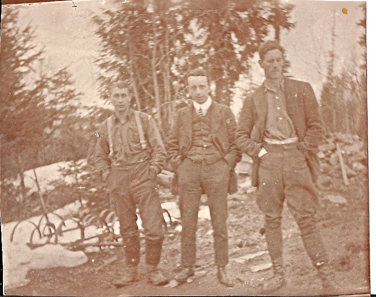 - Alfred (left) with friend Stanley Frost and another man in Notch Hill c. 1908